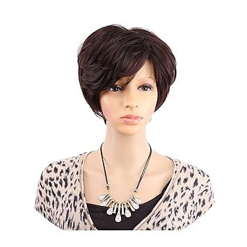 Womens Synthetic Short Wigs Pixie Cut Hairstyle Blonde Bangs Dark